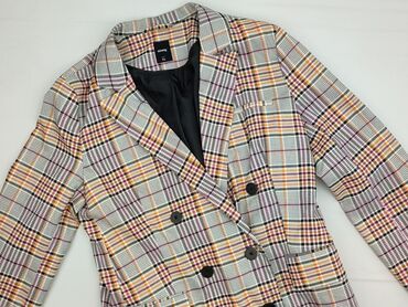 Marynarka damska Sinsay - Rozmiar: XS (z metki) - Krój: krótka, lekko taliowana, dwurzędowa - Wzór: klasyczna krata (czarno-biała z delikatnymi, jasnoróżowymi akcentami) - Kołnierz: z klapami - Za...