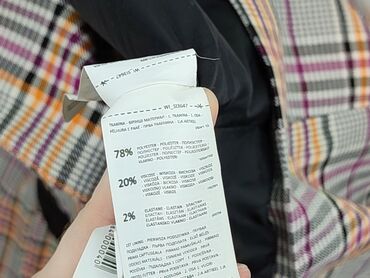 Dwurzędowa marynarka damska Sinsay - Rozmiar: XXS (z metki) - Krój: dopasowany, dwurzędowy - Wzór: klasyczna krata księcia Walii (odcienie brązu, beżu, czerni i subtelnego niebieskiego) - Materiał...