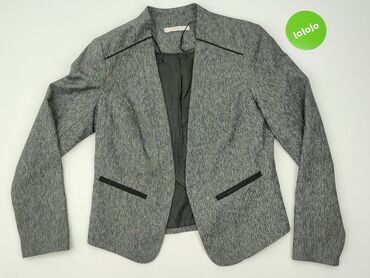 Blazer damski marki George w rozmiarze 38 (EU), charakteryzujący się wzorem paisley w odcieniach bieli, błękitu i szarości. Skład materiałowy to 66% poliester i 34% bawełna, co zapewnia komfort nos...