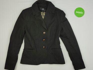Marynarka damska H&M - Kolor: czarny - Krój: dopasowany, jednorzędowy na jeden guzik, z klapami - Kieszenie: dwie przednie z patkami + brustasza - Podszewka: fioletowa, 100% poliester - Materiał w...