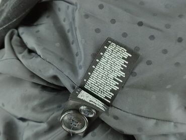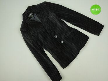 Żakiet damski H&M - Kolor: czarny z delikatnym, wytłaczanym wzorem (subtelny połysk) - Krój: bez zapięcia, lekko taliowany, długość do bioder - Rękawy: długie, lekko marszczone - Kieszenie: dwie z...