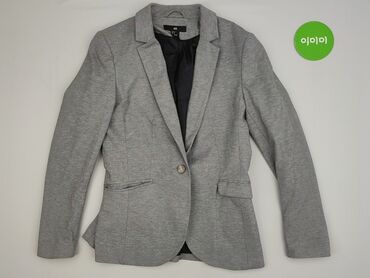 Damska marynarka H&M - Kolor: szary melanż - Krój: taliowany, jednorzędowy na 1 guzik - Kołnierz: klasyczne, delikatnie zaokrąglone klapy - Kieszenie: dwie przednie kieszenie z wypustką - Podszewk...