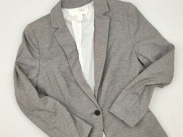 Marynarka damska H&M - Kolor: jasnoszary, delikatny melanż - Krój: taliowany, z klapami; z tyłu rozporek - Zapięcie: jeden guzik z przodu - Kieszenie: dwie przednie z patkami (jedna wsuwana, jedna...