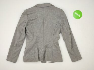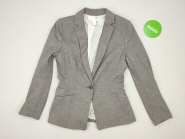 Szary damski żakiet H&M - Marka: H&M - Rozmiar z metki: EUR 34 (US 4, CA 4, CN 160/80A) - Krój: taliowany, jednorzędowy na jeden guzik - Kołnierz: klasyczne klapy - Kieszenie: dwie wpuszczane z pr...