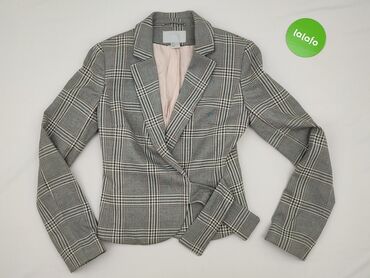 Marynarka damska H&M - Rozmiar z metki: EU 36 (US/CA 4, CN 165/84A, MX 4) - Krój: jednorzędowa, z klapami, zapięcie na jeden guzik - Wzór: klasyczna krata (odcienie szarości, bieli i delikatnego b...