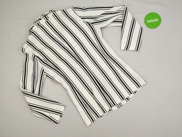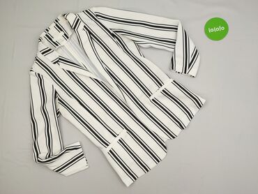 Marynarka damska Reserved XS - Krój: dwurzędowa, taliowana, z długim rękawem - Wzór: biało‑czarne, wąskie poziome paski - Kołnierz: klasyczne, szerokie klapy - Zapięcie: cztery czarne guziki z prz...