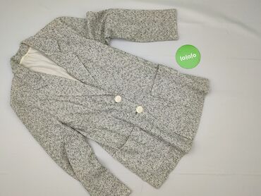 Damski płaszcz/żakiet w odcieniach szarości z drobnym, tkanym mikrowzorem (kratka/efekt „pepita”). Model z kołnierzem i dwurzędowym zapięciem na trzy guziki z przodu. Prosty, lekko pudełkowy krój ...