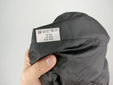 Czarna krótka marynarka damska - Fason: krótki żakiet, prosta linia - Zapięcie: na 4 guziki z przodu - Kołnierz: stójka - Rękawy: długie - Materiał: gładka tkanina garniturowa (syntetyk/bawełna – ...