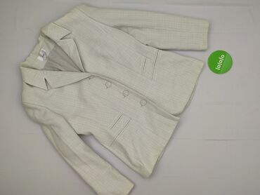 Blazer damski w odcieniu beżowym, idealny na różne okazje. Charakteryzuje się klasycznym krojem z długimi rękawami oraz kołnierzem z klapami, zapinany na guziki z przodu. Posiada dwie praktyczne ki...