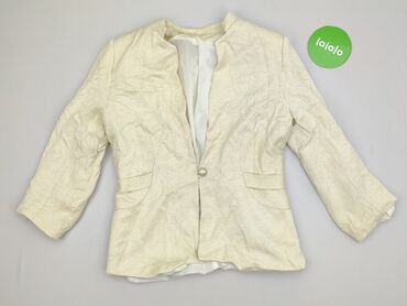 Damska marynarka w kolorze białym/ecru - Krój: taliowany, jednorzędowy - Zapięcie: 2 guziki z przodu - Kołnierz: klasyczne, ostre klapy - Kieszenie: trzy z przodu (dwie dolne poziome, jedna piersi...