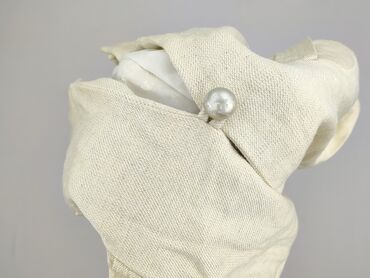 Żakiet damski w kolorze ecru z ozdobnymi aplikacjami - Fason: klasyczny żakiet z kołnierzem z klapami, zapinany na pojedyncze guziki - Detale: dekoracyjne kamienie, dżety i koraliki przy kołnierzu...
