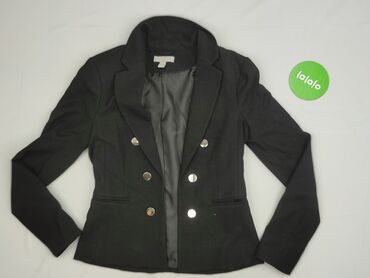 Damska marynarka H&M – krótki żakiet, czarny - Model: krótki, taliowany żakiet z klapami - Zapięcie: jeden guzik z przodu - Rękawy: długie, mankiety z trzema dekoracyjnymi guzikami - Kieszenie: dw...