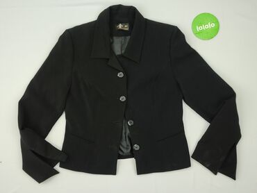Damski czarny blazer w rozmiarze 36, zapinany na trzy guziki, z rękawami 3/4. Posiada klapy i taliowany krój. Idealny do noszenia na co dzień, zarówno do biura, jak i na wieczorne wyjścia. Materiał...