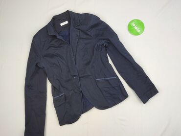 Żakiet damski Orsay - Kolor: granatowy, subtelny melanż - Krój: bez zapięcia, lekko taliowany, pionowe cięcia wysmuklające sylwetkę - Rękawy: długie - Kieszenie: dwie wpuszczane z przodu - Podszew...