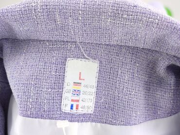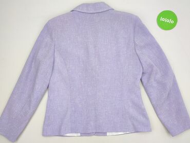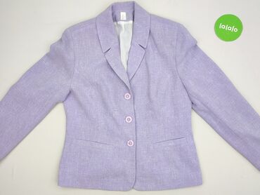 Żakiet damski w kolorze lawendowym - Krój: prosta, lekko pudełkowa forma, bez kołnierza (dekolt okrągły), zapinanie na 4 guziki z przodu - Rękawy: długie - Materiał: 100% poliester (zewnętrzna tka...Stan: