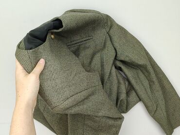 Damska marynarka/żakiet Creator, rozmiar S. - Kolor: szarooliwkowy - Fason: taliowany, z klapami; dekoracyjne przeszycia podkreślające sylwetkę - Zapięcie: dwa guziki z przodu - Kieszenie: dwie du...