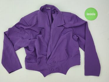Damska marynarka żakietowa, czarna, z fioletową podszewką. - Krój: wydłużony, jednorzędowy - Zapięcie: 5 guzików z przodu - Kołnierz: klasyczne klapy - Kieszenie: dwie przednie, poziome - Materiał:...