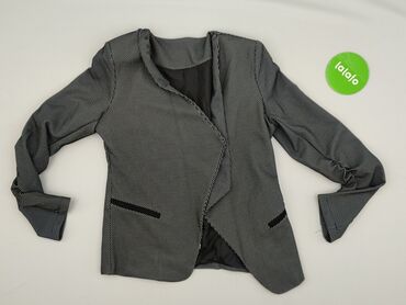 Damski żakiet w kratkę – „NEW COLLECTION” - Krój: długi, bez zapięcia (otwarty), z klapami - Wzór: klasyczna drobna pepitka/kratka w odcieniach szarości i czerni - Rękawy: długie - Kieszenie: dwie...