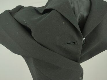 Elegancka damska marynarka w klasycznym czarnym kolorze. Posiada zapięcie na jeden guzik z przodu oraz dwie praktyczne kieszenie z patkami. Rękawy marynarki są wykończone trzema ozdobnymi guzikami....Stan:
