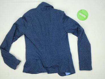 Marynarka damska w paski H&M - Model: krótka marynarka bez zapięcia, z kontrastową granatową lamówką przy krawędziach - Wzór: poziome granatowo-białe paski, styl marynistyczny - Fason: lekko talio...