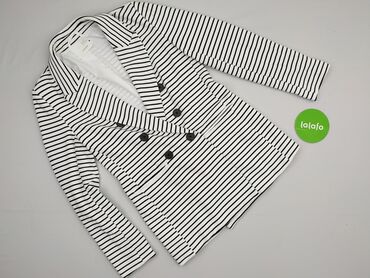 Biała marynarka damska Reserved - Rozmiar: 36 (z metki) - Krój: taliowany, jednorzędowy na jeden guzik z dekoracyjnym medalionem; klasyczne, wąskie klapy; rękawy do nadgarstków z możliwością podwi...