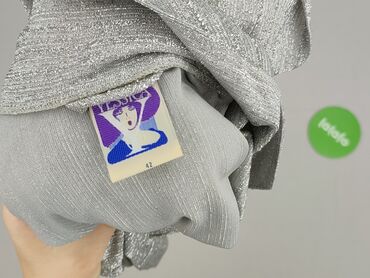 Żakiet damski NOWATEX Collection - Kolor: grafitowy/szary melanż z delikatną, drobną fakturą. - Rozmiar z metki: 46. - Skład: 100% poliester (metka z oznaczeniami prania widoczna na zdjęciu). - Kr...
