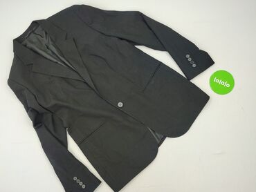 Damski czarny blazer w rozmiarze 36, zapinany na trzy guziki, z rękawami 3/4. Posiada klapy i taliowany krój. Idealny do noszenia na co dzień, zarówno do biura, jak i na wieczorne wyjścia. Materiał...