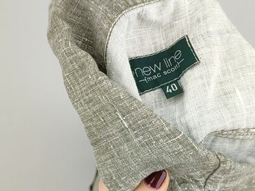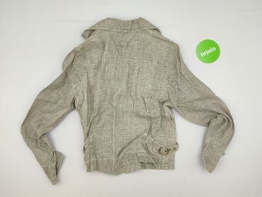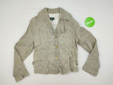 Żakiet damski SULTEX - Kolor: beż/len naturalny - Rozmiar z metki: 40 - Krój: lekko taliowany - Zapięcie: 3 drewniane guziki z przodu - Kołnierz: szeroki, z dekoracyjną listwą/lamówką - Rękaw: 3/4...
