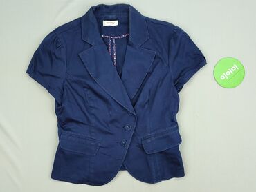 Żakiet damski Orsay - Kolor: granatowy, subtelny melanż - Krój: bez zapięcia, lekko taliowany, pionowe cięcia wysmuklające sylwetkę - Rękawy: długie - Kieszenie: dwie wpuszczane z przodu - Podszew...