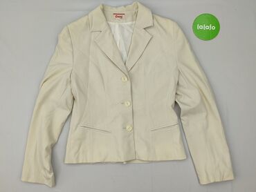 Żakiet damski Carlo Comberti - Kolor: kremowy/śmietankowy - Rozmiar z metki: XL - Krój: pudełkowy, lekko luźny - Rękaw: krótki - Kołnierz: szerokie, klasyczne klapy - Zapięcie: na jeden guzik z pr...