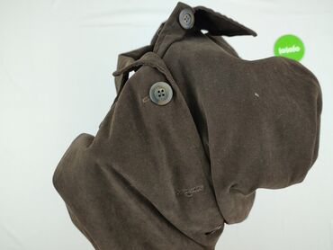 Damska marynarka KWASEK - Kolor: brąz z delikatnym, jasnym geometrycznym nadrukiem (kreski/kratka) - Krój: klasyczny, jednorzędowy - Zapięcie: 3 guziki z przodu - Kołnierz: szerokie, wyłogowe klap...Stan:
