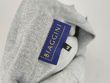 Klasyczna, elegancka marynarka idealna do spodni, spódnic i sukienek. Marka: BIAGGINI. Rozmiar 46. Jasnoszary melanż, rękaw 3/4, kieszenie i ozdobne guziki.