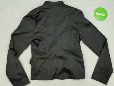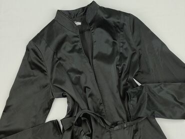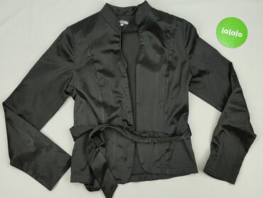 H&M – czarny damski żakiet/płaszczyk - Fason: krótki, lekko taliowany, z kołnierzem - Zapięcie: duże dekoracyjne guziki z przodu (2) + ozdobny pasek z guzikami z tyłu - Rękawy: długie - Kieszenie:...