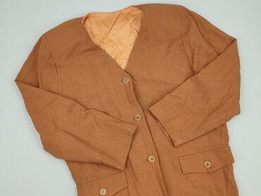Brązowa marynarka damska marki F&F, wykonana z mieszanki lnu (55%) i wiskozy (45%). Marynarka jest zapinana na jeden guzik i posiada dwie kieszenie z przodu. Stan bardzo dobry, idealna do noszenia ...