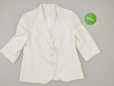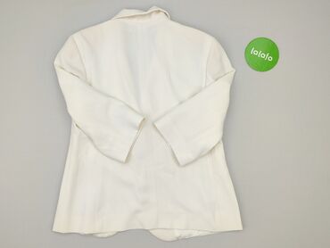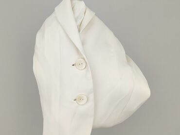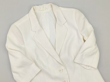 Biały damski żakiet - Krój: klasyczny, taliowany, z długim rękawem - Kołnierz: z klapami (rewers) - Zapięcie: 2 duże guziki z przodu - Kieszenie: dwie naszywane z patkami z przodu - Materiał: gład...