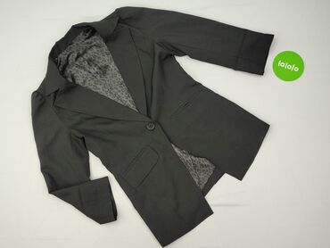 Czarny żakiet damski, zapinany na jeden guzik, z wykładanym kołnierzem i klapami. Posiada dwie kieszenie z patkami w dolnej części. Długie rękawy i dopasowany krój sprawiają, że idealnie nadaje się...
