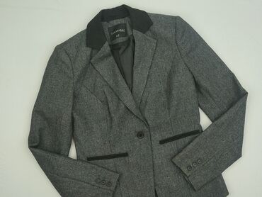 Szary damski żakiet FAAME - Rozmiar: 42 (z metki) - Krój: taliowany, jednorzędowy na jeden guzik - Kołnierz: klasyczne, szerokie klapy - Kieszenie: dwie wsuwane z przodu - Materiał (z metki): 80% ...