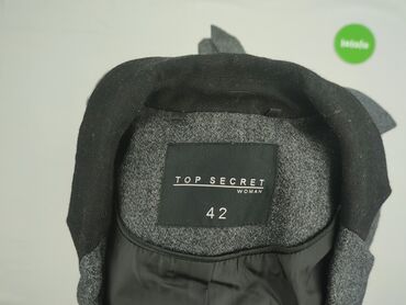 Damska krótka marynarka/żakiet bez zapięcia - Kolor: głęboki bordowy/brązowy - Materiał: 100% poliester (metka widoczna na zdjęciu) - Rozmiar z metki: 40 - Fason: krótki, lekko taliowany, bez kołn...