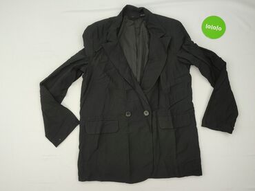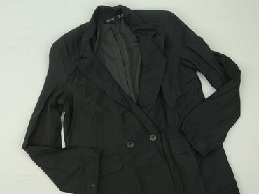 Marynarka damska Esmara - Kolor: czarny - Fason: dwurzędowy look (dwa guziki z przodu), klapy w szpic - Kieszenie: dwie naszywane z patkami z przodu - Podszewka: 100% poliester - Skład tkaniny wie...