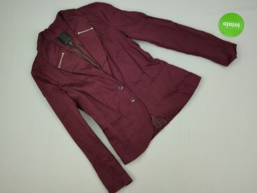 Różowy damski żakiet AMISU - Marka: AMISU - Rozmiar z metki: EU 34 / USA 4 / CN 160/80 - Fason: jednorzędowy, kołnierz z klapami, dłuższy krój - Zapięcie: na dwa guziki z przodu - Kieszenie: dwie ...