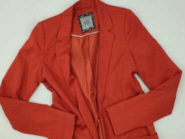 Marynarka damska RESERVED - Kolor: ceglasty/czerwony melanż - Rozmiar z metki: 34 - Fason: taliowany, z rozcięciem z tyłu - Zapięcie: dwa ozdobne metalowe guziki z tłoczeniem - Kołnierz: klapy w s...