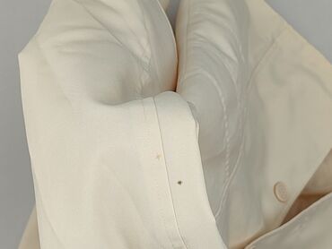Marynarka damska w kolorze ecru/śmietankowym. - Krój: taliowany, z klapami i zapięciem na 2 guziki - Rękawy: długie - Kieszenie: dwie przednie wsuwane - Rozmiar z metki: 38 - Materiał: gładka, lek...