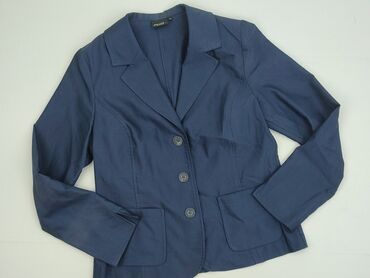 Damska marynarka garniturowa w kolorze ciemnogranatowym. - Krój klasyczny, lekko taliowany - Zapięcie na 3 guziki z przodu - Klapy w stylu notch lapel - Dwie kieszenie z patkami z przodu - Rękawy ...