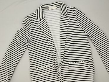 Marynarka damska Reserved, rozmiar XS. - Krój: dwurzędowy żakiet z głębokimi klapami i zaznaczoną talią - Wzór: biało‑czarne, wąskie paski (pionowe na sylwetce, na klapach i rękawach układ zgodny ...