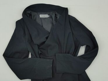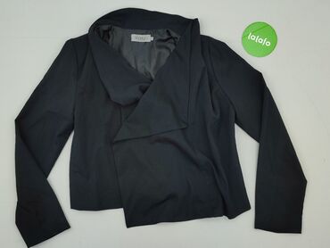 Damska marynarka czarna, rozmiar 40 - Klasyczny fason z kołnierzem szalowym - Długie rękawy - Dwie wpuszczane kieszenie z przodu - Otwarta z przodu (bez zapięcia) - Wnętrze/odszycie przodów z kontr...