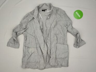 Żakiet damski SULTEX - Kolor: beż/len naturalny - Rozmiar z metki: 40 - Krój: lekko taliowany - Zapięcie: 3 drewniane guziki z przodu - Kołnierz: szeroki, z dekoracyjną listwą/lamówką - Rękaw: 3/4...