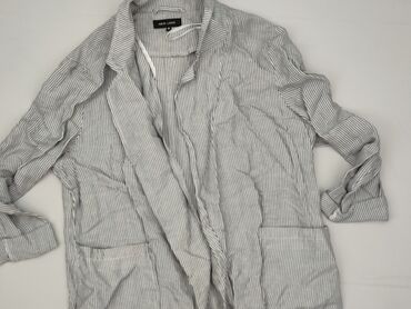 Marynarka damska w paski - Krój: prosty, bez kołnierza (okrągłe wykończenie pod szyją), zapięcie na zamek błyskawiczny z przodu - Wzór: pionowe paski w odcieniach błękitu, beżu i ecru - Kieszenie:...