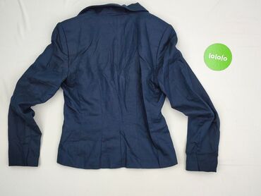 Marynarka damska H&M - Kolor: granatowy - Fason: klasyczna, bez zapięcia (otwarta), dopasowana, z klapami bez kołnierza - Rozmiar z metki: EUR 36 (US 6, CA 6, CN 165/88A, MX 6) - Materiał: tkanina...