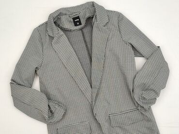 Żakiet damski Sinsay – krótki, w pepitkę - Marka: Sinsay - Rozmiar z metki: M - Krój: krótki (cropped), zapinany na jeden guzik - Kołnierz: klasyczne, szerokie klapy - Rękawy: długie - Wzór: drobn...