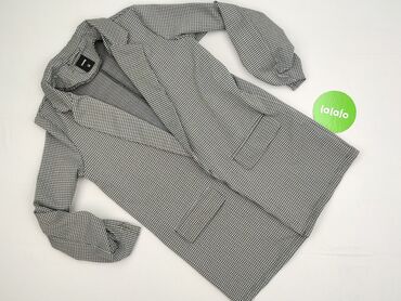 Marynarka damska Sinsay - Rozmiar: XS (z metki) - Krój: krótka, lekko taliowana, dwurzędowa - Wzór: klasyczna krata (czarno-biała z delikatnymi, jasnoróżowymi akcentami) - Kołnierz: z klapami - Za...Stan: